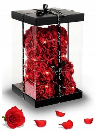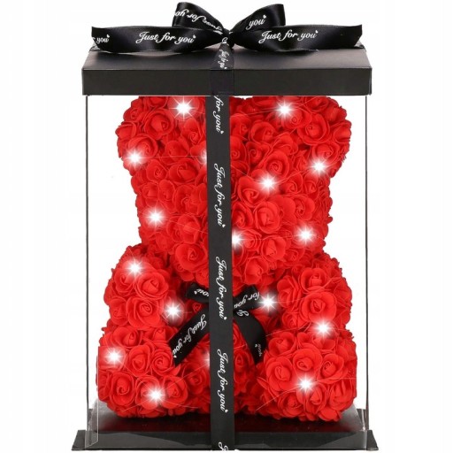 Miś z płatków róż 40cm lampki LED DUŻY XL pudełko WALENTYNKI prezent GRATIS