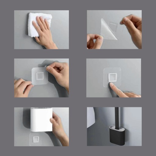 4. Dociskaj uchwyt przez kilka sekund, aby zapewnić mocne przyleganie do ściany. Po zakończeniu instalacji uchwytu, możesz umieścić w nim szczotkę.