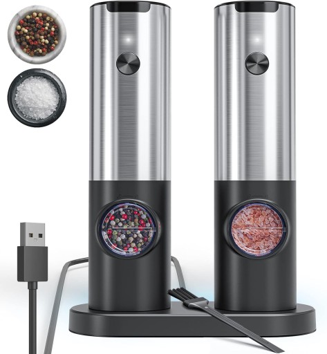 Za pomocą stacji ładującej można naładować 2 młynki do pieprzu za pomocą kabla USB, interfejs typu c, pełne naładowanie trwa 2,5 godziny i około krótki czas mielenia 200-300 razy. Nie musisz już kupować od 4 do 6 dodatkowych baterii.
