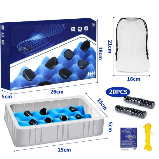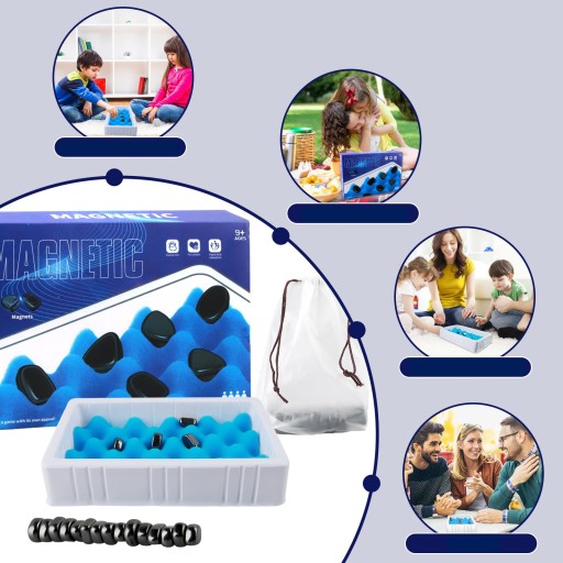- Zasady gry: Celem gry jest umieszczenie wszystkich magnesów w dłoni we wklęsłej siatce z gąbki, tak aby magnesy nie łączyły się ze sobą.