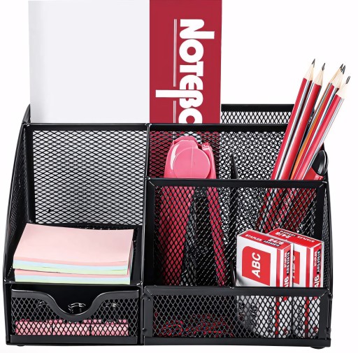 ✅Funkcjonalność doskonała dla Twoich potrzeb - Nasz organizer pomieści wszystko, co niezbędne - od długopisów po zeszyty, od karteczek po markery. Posiada aż cztery mniejsze przegrody, przestrzenną przegródkę na zeszyty czy notesy, praktyczną półkę na karteczki i drobne akcesoria oraz wysuwaną szufladkę. Wszystko jest dokładnie tam, gdzie powinno być, co zwiększa Twoją efektywność.