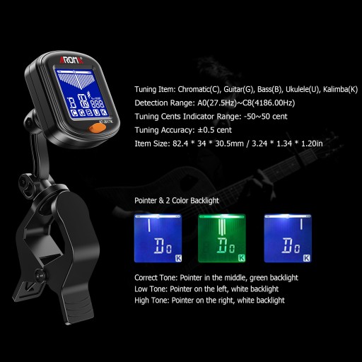AROMA Clip-on Tuner Mini Portable Digital Tuning
