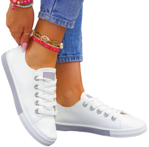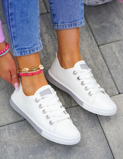 - Białe trampki w całości wykonane z mięciutkiej eco skórki.
