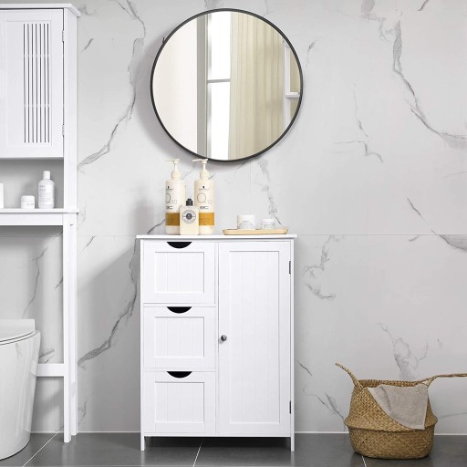 Funkcjonalna szafka - regał z trzema szufladami, doskonale sprawdzi się w łazience, w przedpokoju do przechowywania toreb, szalików, ozdób, kluczy itp., a także w sypialni czy garderobie.