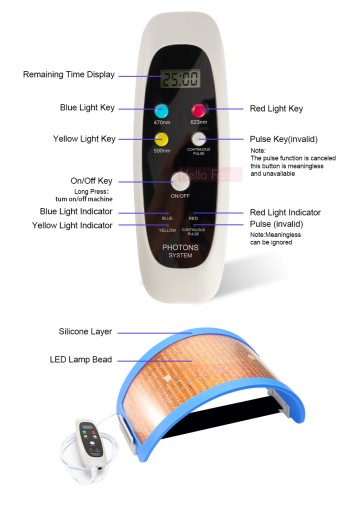 - Diody LED (LED Lamp Bead) - jednostki emitujące światło, które znajdują się w masce i wykonują terapię światłem.