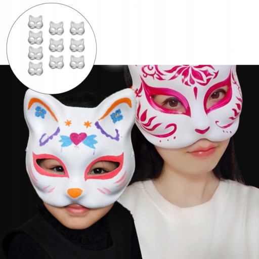 10SZT MASKA DO TWARZY KOTA HALLOWEEN PUSTA THERIAN COSPLAY DO MALOWANIA DIY Płeć uniseks