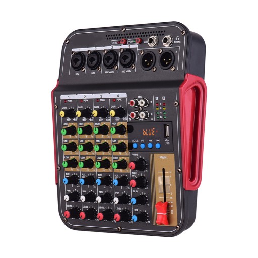 Czterokanałowy mikser Muslady TM4, kompaktowy system audio do nagrywania w studiu, sprzęt DJ, live online itp.