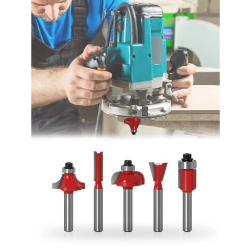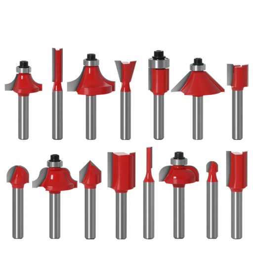 Zestaw profesjonalnych narzędzi do maszyn do formowania górnego wału z uchwytem 6,35 mm. Przeznaczone do obróbki twardego i miękkiego drewna, płyt wiórowych, sklejki itp.