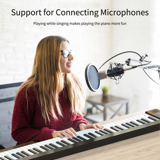 Składana konstrukcja: fortepian klawiszowy można złożyć na pół, oszczędzając miejsce i przenośny w torbie transportowej; wbudowany akumulator umożliwia wygodne użytkowanie na zewnątrz.