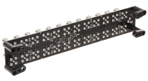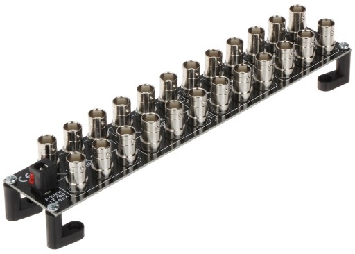 Odpowiednie odległości pomiędzy gniazdami, umożliwiają swobodne dokręcenie palcami dowolnego wtyku BNC