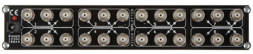 Rozgałęźnik RV-8/16-UHD/R składa się z 8 niezależnych dwuwyjściowych rozgałęźników sygnału wideo
