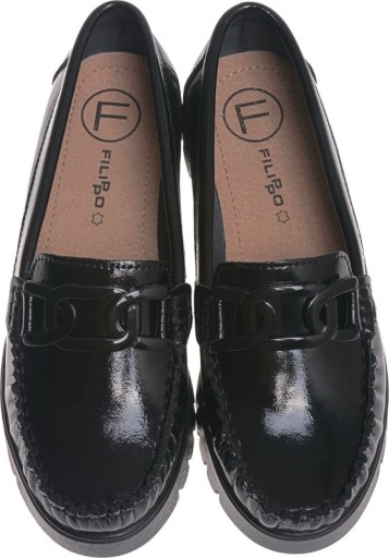 PÓŁBUTY DAMSKIE MOKASYNY NA PLATFORMIE SKÓRA czarny lakier 40