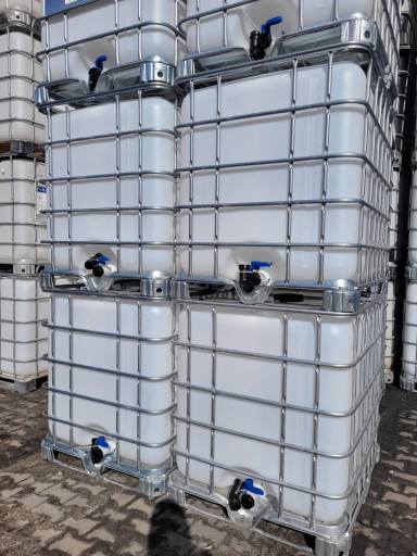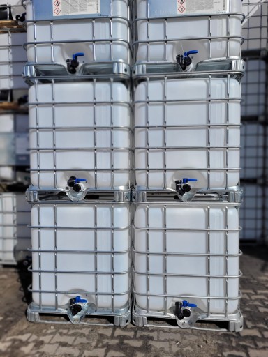 Składa się z nowego wkładu o pojemności 1000l i okratowania chroniącego naczynie przed naciskiem i rozpieraniem. Pojemnik jest półprzezroczysty, pozwala to obserwować i kontrolować ilości płynu w zbiorniku. Transport pojemnika ułatwia podstawa paletowa ,do wyboru metalowa ,plastikowa oraz drewniana.(prosimy o wybór palety w wiadomości).