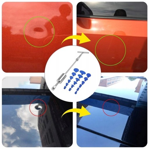 Zestaw do usuwania wgnieceń karoserii znajduje zastosowanie przy usuwaniu wgnieceń powstałych m.in. w wyniku drobnych kolizji, szkód parkingowych, wandalizmu, a nawet gradobicia. Metoda usuwania wgnieceń PDR (ang. Paintless Dent Repair) pozwala na usunięcie wgnieceń z metalowej karoserii bez konieczności jej późniejszego malowania. Oznacza to, że sprawdzi się ona nie tylko w przypadku samochodów ale również innych sprzętów: lodówek, pralek, drzwi i tym podobnych powierzchni blaszanych.
