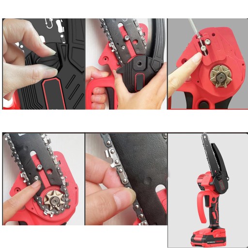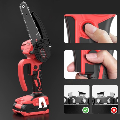 - Minipiła łańcuchowa posiada mocny silnik bezszczotkowy, który umożliwia cięcie bez opóźnień, cicho i wydajnie.