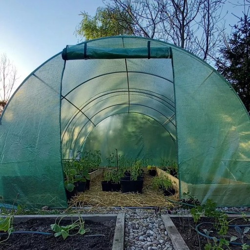 ⭐ Nowoczesna szklarnia foliowa ma zwijane drzwi z suwakiem, co znacznie podnosi komfort użytkowania.