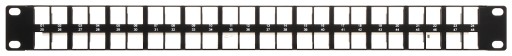 Miejsce na złącza: 48 szt. Materiał: Metal Kolor: Czarny Zastosowanie: RACK 19", 1U Wybrane cechy: