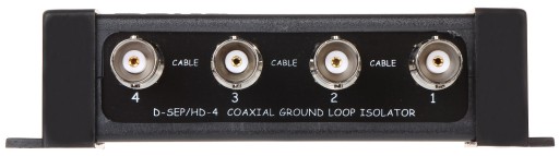 D-SEP/HD-4 izolator pętli masy (ground loop isolator) jest pasywnym urządzeniem, które eliminuje lub zmniejsza zakłócenia sygnału wynikające z różnicy potencjałów pomiędzy urządzeniami i prądami płynącymi masą sygnałową