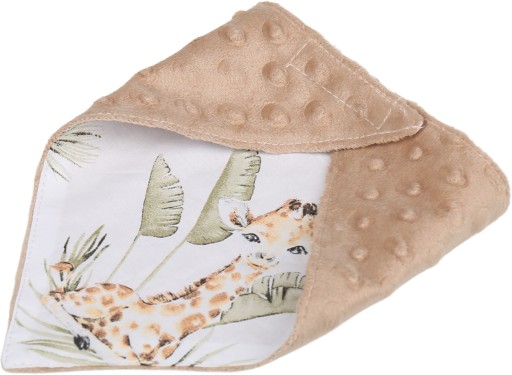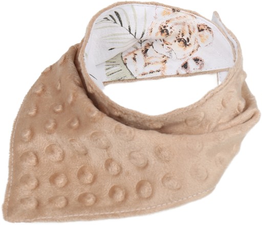 Dwuwarstwowa apaszka Babymam uszyta jest z bawełny i pluszu minky z bąbelkami. Jest to „must have” każdej wyprawki dla dziecka. Bawełniana strona jest chłonna, dlatego może pełnić rolę śliniaczka, strona minky natomiast jest milutka i ciepła gdyby wiatr na spacerze okazał się zbyt dokuczliwy. Nasza apaszka ma kształt trójkąta, układa się swobodnie na szyi dziecka i stanowi ładny element ubioru.