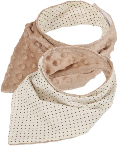 Dwuwarstwowa apaszka Babymam uszyta jest z bawełny i pluszu minky z bąbelkami. Jest to „must have” każdej wyprawki dla dziecka. Bawełniana strona jest chłonna, dlatego może pełnić rolę śliniaczka, strona minky natomiast jest milutka i ciepła gdyby wiatr na spacerze okazał się zbyt dokuczliwy. Nasza apaszka ma kształt trójkąta, układa się swobodnie na szyi dziecka i stanowi ładny element ubioru.