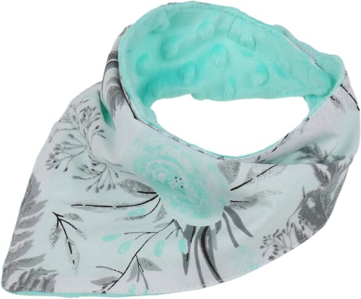 Dwuwarstwowa apaszka Babymam uszyta jest z bawełny i pluszu minky z bąbelkami. Jest to „must have” każdej wyprawki dla dziecka. Bawełniana strona jest chłonna, dlatego może pełnić rolę śliniaczka, strona minky natomiast jest milutka i ciepła gdyby wiatr na spacerze okazał się zbyt dokuczliwy. Nasza apaszka ma kształt trójkąta, układa się swobodnie na szyi dziecka i stanowi ładny element ubioru.
