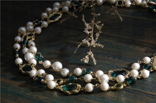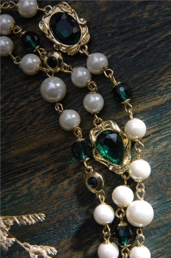 Jeśli szukasz wyrazistego elementu, znalazłeś go dzięki Naszyjnikowi z pereł i szmaragdów w stylu vintage. Zaprojektowany, aby ubrać suknię, garnitur lub ładny sweter, ten oszałamiający element ma urocze cyrkonie sześcienne, które wyglądają jak szmaragdy w połączeniu ze sztucznymi perłami. Podaruj tę piękność swojej dziewczynie, żonie lub bestii, ona to pokocha!