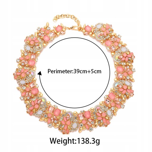 【SPECYFIKACJA】Crystal/Rhinestone Statement Necklace. Długość łańcuszka: 400-450 mm; Szerokość łańcuszka: 30 mm ; Waga: 155g .