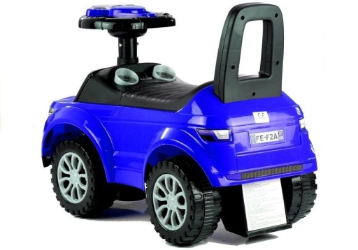 Niebieski jeździk został wykonany z bardzo lekkiej konstrukcji, dzięki czemu jest łatwy w manewrowaniu i prowadzeniu. W dużym, a przede wszystkim miękkim siedzisku, znajduje się sprytny schowek na drobiazgi, na przykład zabawki, które maluch chce zabrać ze sobą na spacer. Wygodne oparcie dołączone do siedziska sprawi, że dziecko będzie zachowywać prostą postawę podczas zabawy, a ponadto czuć się komfortowo. Duże, szerokie koła jeździka umożliwią wybieranie różnych podłóż do zabawy, dzięki czemu samochodzik sprawdzi się zarówno w domu, jak i na podwórku. Maksymalne obciążenie jeździka to 27 kg, dlatego z pewnością posłuży Twojemu maluchowi przez długi czas.