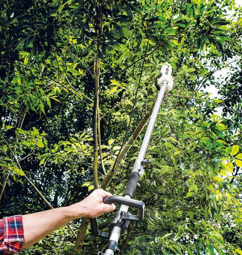 Piła gałęziówka i nożyce pozwalają na przycinanie gałęzi, krzewów oraz żywopłotów.