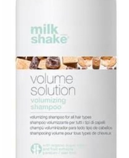 Milk Shake Volume Solution Shampoo to szampon stworzony z myślą o włosach cienkich, delikatnych i oklapniętych. Produkt delikatnie czyści włosy i skórę głowy. Pozostawia włosy odświeżone i pełne objętości. Nadaje im lekkość i wzmacnia je. W składzie znajdziemy proteiny mleka, które uzupełniają strukturę włosów, dzięki czemu te stają się miękkie, silne i jedwabiste. Polisacharydy zagęszczają włosy a gliceryna je odżywia, dzięki czemu stają się one silne i mniej łamliwe. Zwiększają grubość włosa dzięki jego uzupełnieniu. Szampon nawilży i odżywi cienkie włosy, zniweluje efekt rozdwojonych końcówek a aloes uspokoi skórę głowy. Szampon ma cukrowy zapach, dzięki czemu włosy będą pachnieć pięknie przez długi czas.