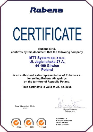 - certyfikat RUBENA świadczący o tym, że membrany w naszych zestawach są oryginalne