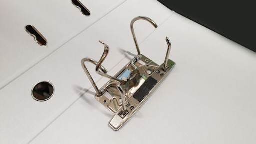 Zaletą segregatorów Interdruk są wytrzymałe blokady przeciw samoczynnemu otwarciu segregatora.