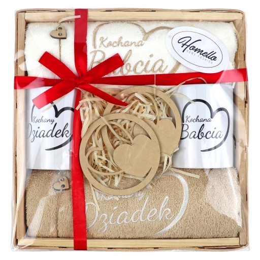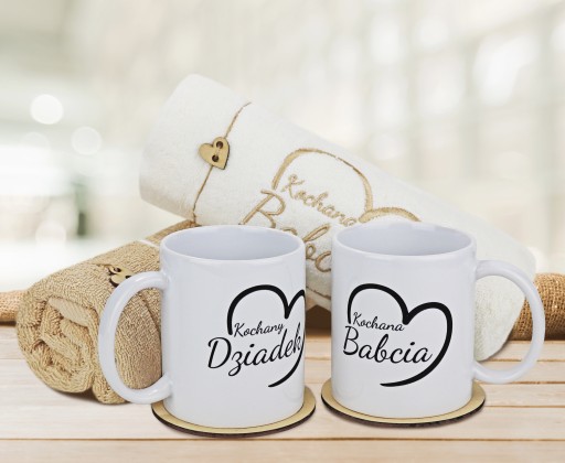 ZESTAW RĘCZNIKÓW PREZENT DLA DZIADKÓW NA DZIEŃ BABCI DZIADKA KUBKI RĘCZNIKI