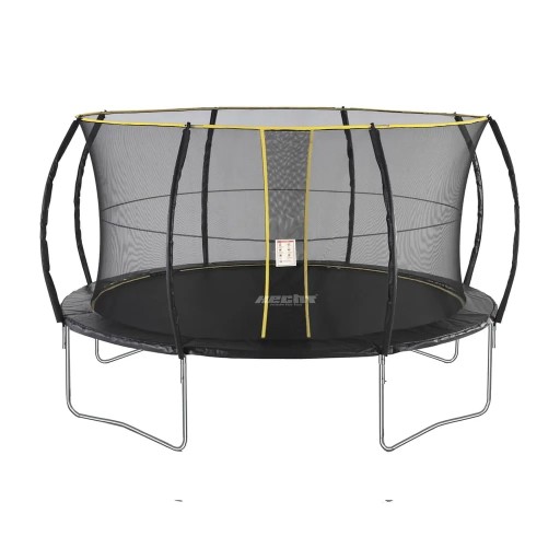 Spełnia surową normę EN-71 (norma bezpieczeństwa dzieci). Gwarantowana nośność 150 kg w użyciu (mieści ciężary do 550 kg). Ściany prętów obwodowych mają grubość 1,4 mm, ściany prętów nośnych 1,2 mm. Siatka ochronna wewnętrzna po obwodzie trampoliny, chroni przed przypadkowym kontaktem użytkownika ze sprężynami. Nowoczesny, zaokrąglony design dyni. Wejście przez przejście przez złożoną siatkę ochronną - nie zapomnij o zamknięciu siatki.