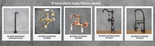 Bateria wannowa wolnostojąca podłogowa antyczny mosiądz GLEN 1