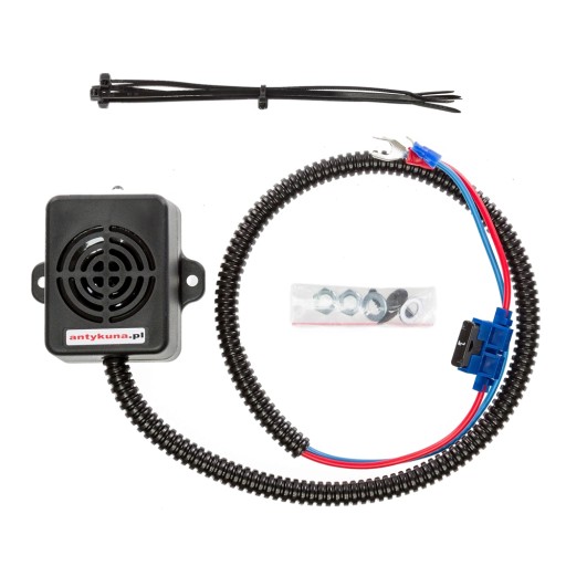 Montaż tego odstraszacza jest niezwykle prosty - wystarczy go zamontować w komorze silnika, skierować głośnik w stronę przestrzeni z której kuna dostaję się na silnik oraz podłączyć go pod klemy akumulatora lub wyjścia prądowe.