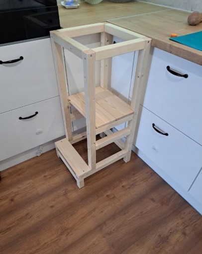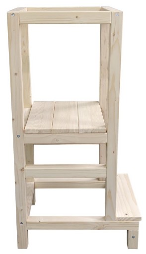 Bezpieczeństwo: Kitchen helper to stabilna i bezpieczna platforma, która umożliwia dzieciom uczestnictwo w czynnościach kuchennych, jednocześnie zapewniając ochronę przed upadkami i kontuzjami. Dzieci mogą swobodnie stać na podestach, co umożliwia im lepsze uczestnictwo w gotowaniu i innych czynnościach w kuchni.