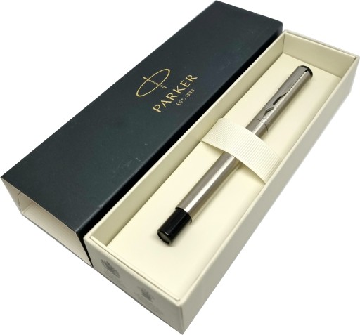 - W zestawie: Pióro, eleganckie firmowe pudełko Parker, startowy wkład (w kolorze niebieskim)