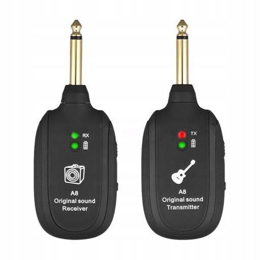 Gitara transmisja bezprzewodowa System gitara elektryczna bezprzewodowy odbiornik bezprzewodowy Transceiver A8 gitara bezprzewodowy odbiornik Cechy:1. Garnitur: bezprzewodowy nadajnik i zestaw z odbiornikiem do elektroakustycznych instrumentów muzycznych, takich jak gitara, bas itp.2. Oryginalna transmisja dźwięku: anty-interfejs i bardzo krótkie opóźnienie, zapewniające najlepszy muzyczny.3. Obsługuje 4 zestawy urządzeń pracujących w tym samym czasie: jeden do jednego; I max. Zasięg transmisji wynosi do 50 metrów.Opis:1. Wbudowany akumulator litowy wielokrotnego ładowania, długie godziny pracy; I jest wyposażony w kabel USB do wygodnego ładowania.2.Plug and play, prosty w użyciu; Kompaktowy rozmiar i lekki, łatwy do przenoszenia.Dane techniczne:Kolor: czarnyMateriał: tworzywo sztuczne metalPakiet zawiera:1 * bezprzewodowy odbiór gitary elektrycznej