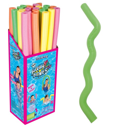 Aqua Bones ™ to zabawny, kształtowany makaron basenowy firmy Bestway®! Zegnij i skręć Aqua Bones w dowolny kształt i zachowają swoją formę. Specjalnie zaprojektowane do rozwijania pewności w wodzie, mogą być również używane do ćwiczeń w wodzie. Wykonane z giętkich kości, które pękają, gdy je wyginasz, świetnie nadają się do unoszenia lub chlapania w wodzie. Aqua Bones to najbardziej pomysłowy sposób na zabawę lub ćwiczenie na basenie tego lata!