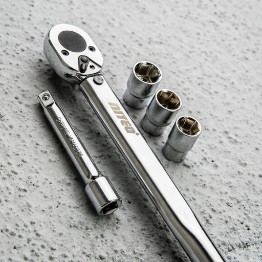 Zestaw zawiera 3 nasadki (17, 19 i 21 mm) wykonane z wysokiej jakości stali chromowo-wanadowej, przedłużkę (125 mm) oraz solidny futerał.