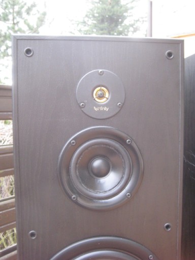 Kolumny renomowanego producenta Infinity. Kolumny (jak widać na foto :--) Stan bardzo dobry. W pełni sprawne, 100% sprawne. Kolumny wraz z maskownicami. Z boku ślady przetarć. Powstały one przy przeprowadzce. Nie ma jednak żadnych ubić.