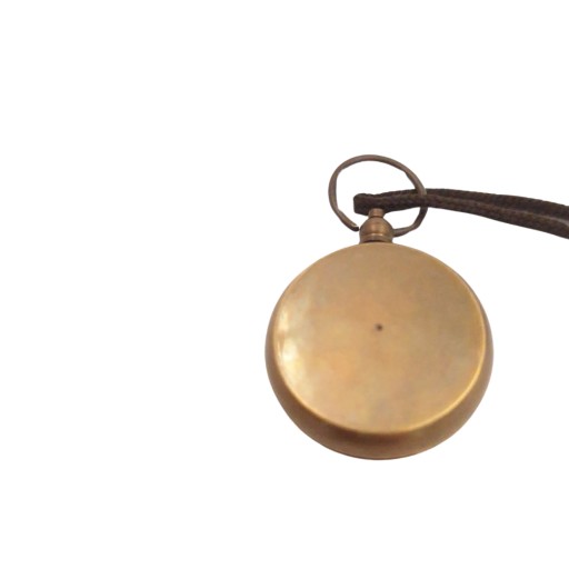 Obudowa breloka wykonana z mosiądzu. Wykończenie w stylu antycznego mosiądzu. Kompas na rzemyku. Mocowanie za pomocą kółka.