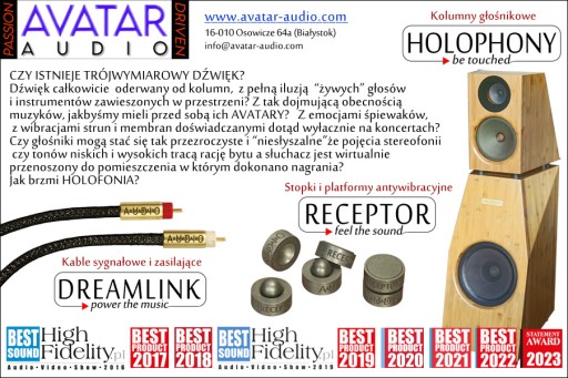Po osiągnięciu przez system Avatar Audio odpowiednio wysokiej rozdzielczości okazało się, że skuteczne odizolowanie komponentów systemu od wibracji podłoża oraz zredukowanie ich wewnętrznych wibracji to chyba najważniejszy warunek uzyskania dźwięku klasy State-of-the-art. W naszej ofercie mamy 4 rodzaje ustrojów antywibracyjnych Receptor: podstawki pod kable, dociski, stopki kulkowe oraz platformy wykorzystujące efekt lewitacji magnetycznej (w Nr 1).
