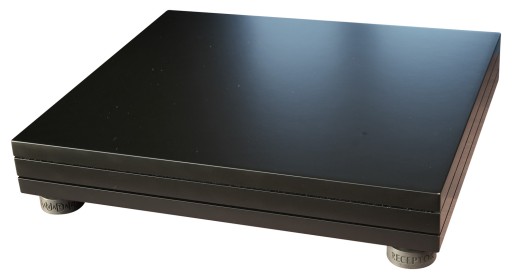 Oferujemy tutaj Platformę RECEPTOR NUMER CZTERY w rozmiarze małym 35x35 cm. Składa się ona z 5 warstw: pomiędzy 3 warstwami z naszego twardego antywibracyjnego materiału firmowego znajdują się 2 warstwy z miękkiego materiału antywibracyjnego. Platforma ustawiona jest na antywibracyjnych stopkach kulkowych. Stopki nie mają przykrywek, kulki trafiają we wgłębienia na spodzie platformy. Grubość samej platformy to 6,6 cm, wysokość kompletu to 13,8 cm. Standardowy kolor platform to grafitowy. Na życzenie wykonamy je w dowolnym kolorze.