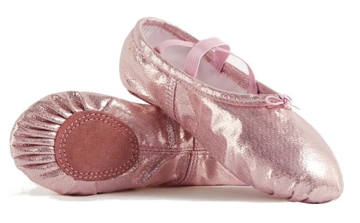 Przedmiotem aukcji są błyszczące baletki idealnie dopasowujące się do stopy.