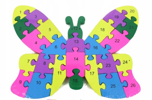 Puzzle Drewniane 26 el Z Literami Cyframi Motyl