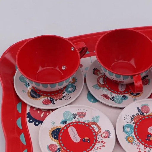 Zestaw jest wyposażony w uroczą tackę, na której można prezentować przygotowane napoje i przekąski. Tacka dodaje elegancji i autentyczności zabawie, a jednocześnie pomaga dzieciom w organizacji ich herbatkowych spotkań.