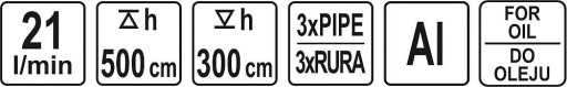 Pompa ręczna do oleju. Lekka zwarta aluminiowa konstrukcja, wydajność 21 litrów/minutę. Wysokość tłoczenia 5 m, głębokość zasysania 3,m.