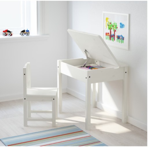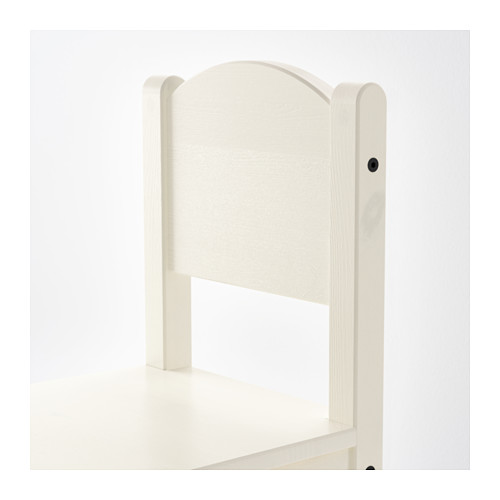 Krzesło SUNDVIK jest wygodne do siedzenia podczas rysowania lub wykonywania prac ręcznych - idealnie pasuje do stolika dla dzieci z tej samej serii.
